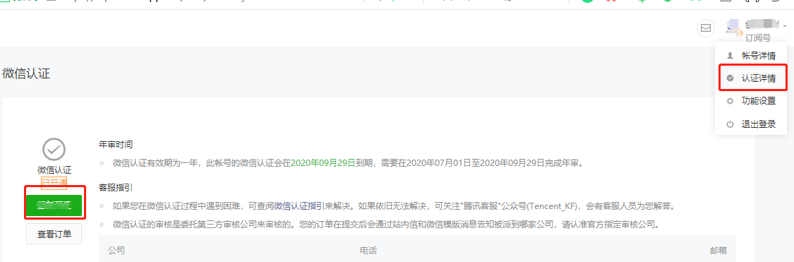可點擊微信公眾平臺右上角 認(rèn)證詳情繼續(xù)公眾號認(rèn)證(認(rèn)證未成功前不能獲取公眾號的二維碼,注??!此處過程中需要下載微信認(rèn)證申請公函,需要蓋公章,如單位公司里面申請使用公章過程復(fù)雜,請?zhí)崆皽?zhǔn)備好公章)