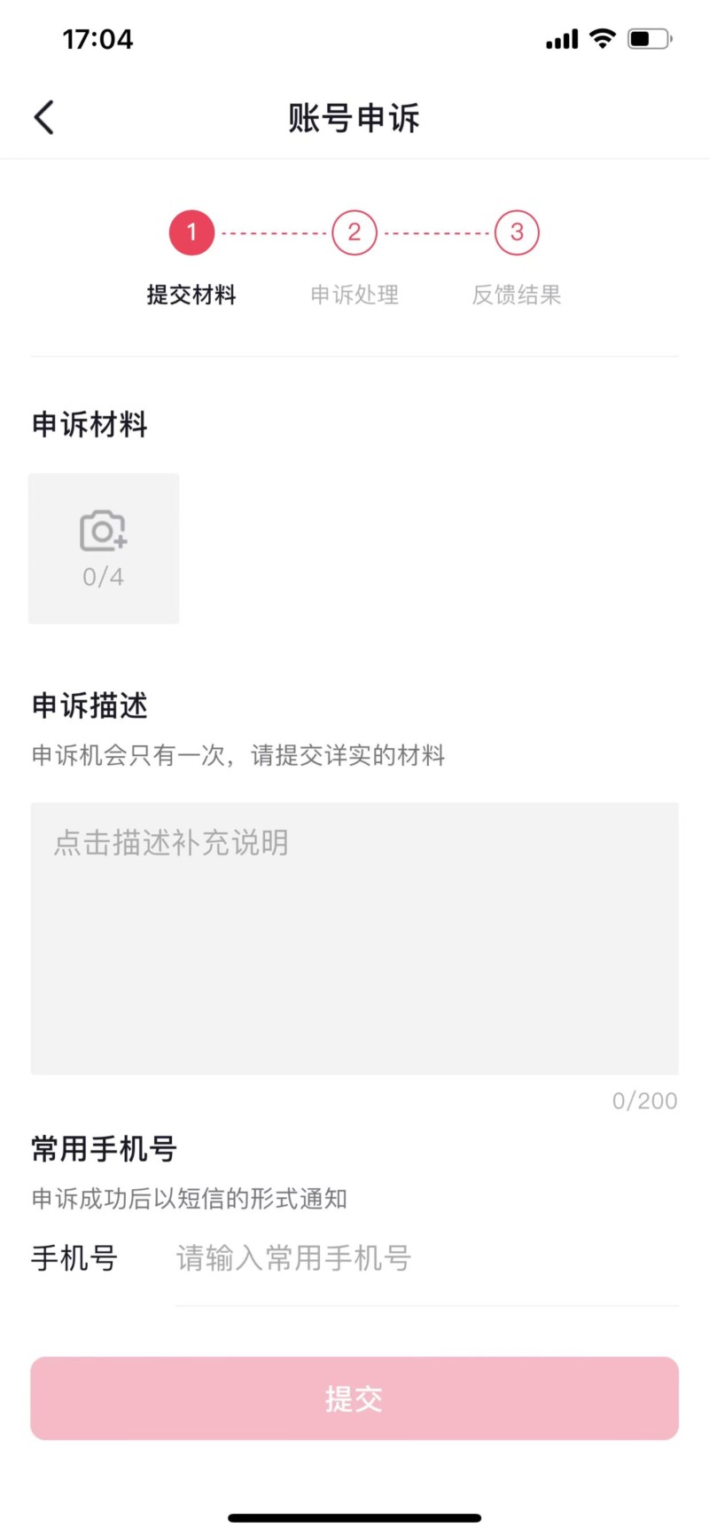 根據(jù)申訴類型填寫相關(guān)信息,并按照頁面提示提供必要的證明材料,比如個人身份證明、視頻證明等。