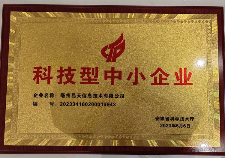 亳州易天信息技術(shù)有限公司在2023年6月6日獲得科技型中小企業(yè)稱號(hào),科技型中小企業(yè)是指以科技人員為主體,由科技人員領(lǐng)辦和創(chuàng)辦,主要從事高新技術(shù)產(chǎn)品的科學(xué)研究、研制、生產(chǎn)、銷售,以科技成果商品化以及技術(shù)開發(fā)、技術(shù)服務(wù)、技術(shù)咨詢和高新產(chǎn)品為主要內(nèi)容,以市場為導(dǎo)向,實(shí)行"自籌資金、自愿組合、自主經(jīng)營、自負(fù)盈虧、自我發(fā)展、自我約束"的知識(shí)密集型經(jīng)濟(jì)實(shí)體。簡而言之,科技型中小企業(yè)是以創(chuàng)新為使命和生存手段的企業(yè)。